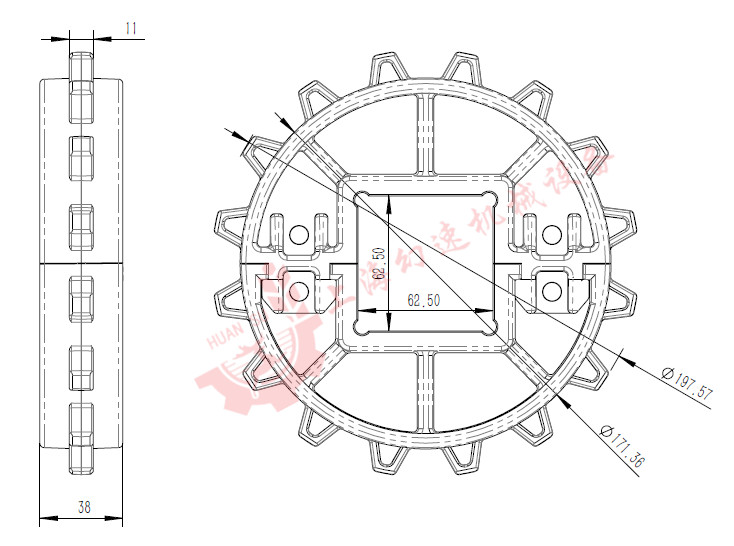 1100塑料網帶16齒鏈輪